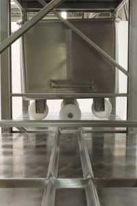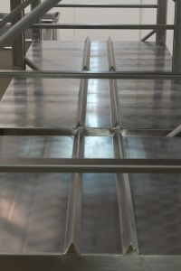 It’s made of stainless steel spans and shelves, both are connected with screws.